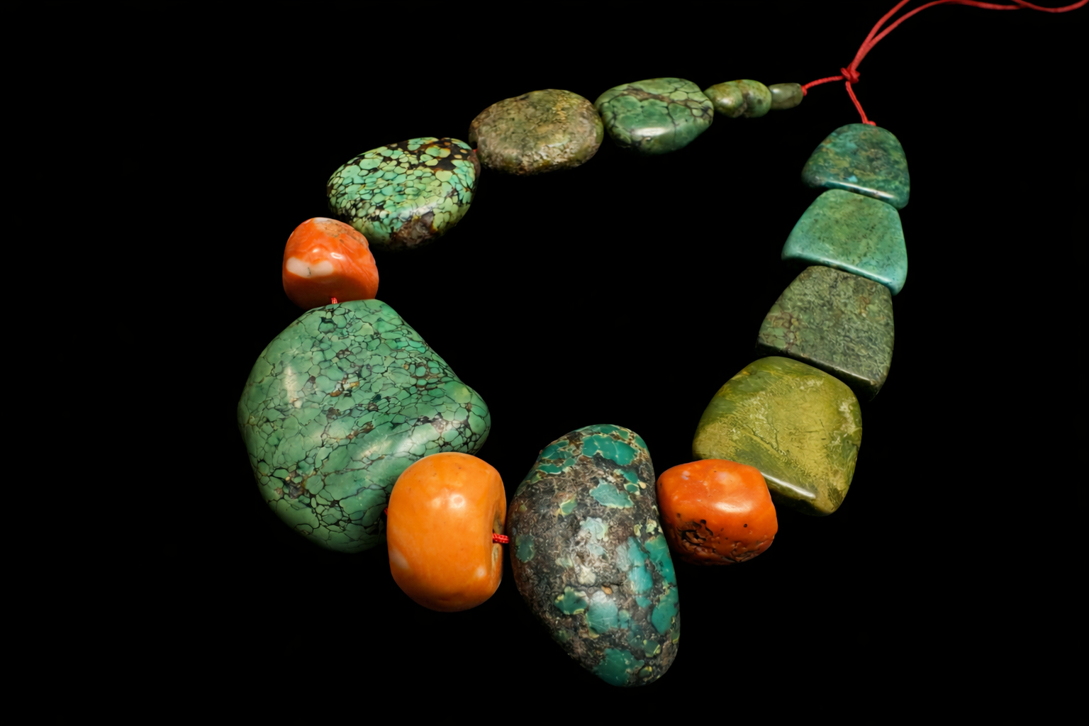 チベタン古代瑪瑙、チベタンターコイズ、チベタンコーラル。最近生み出されたものではないオリジナルの品々。