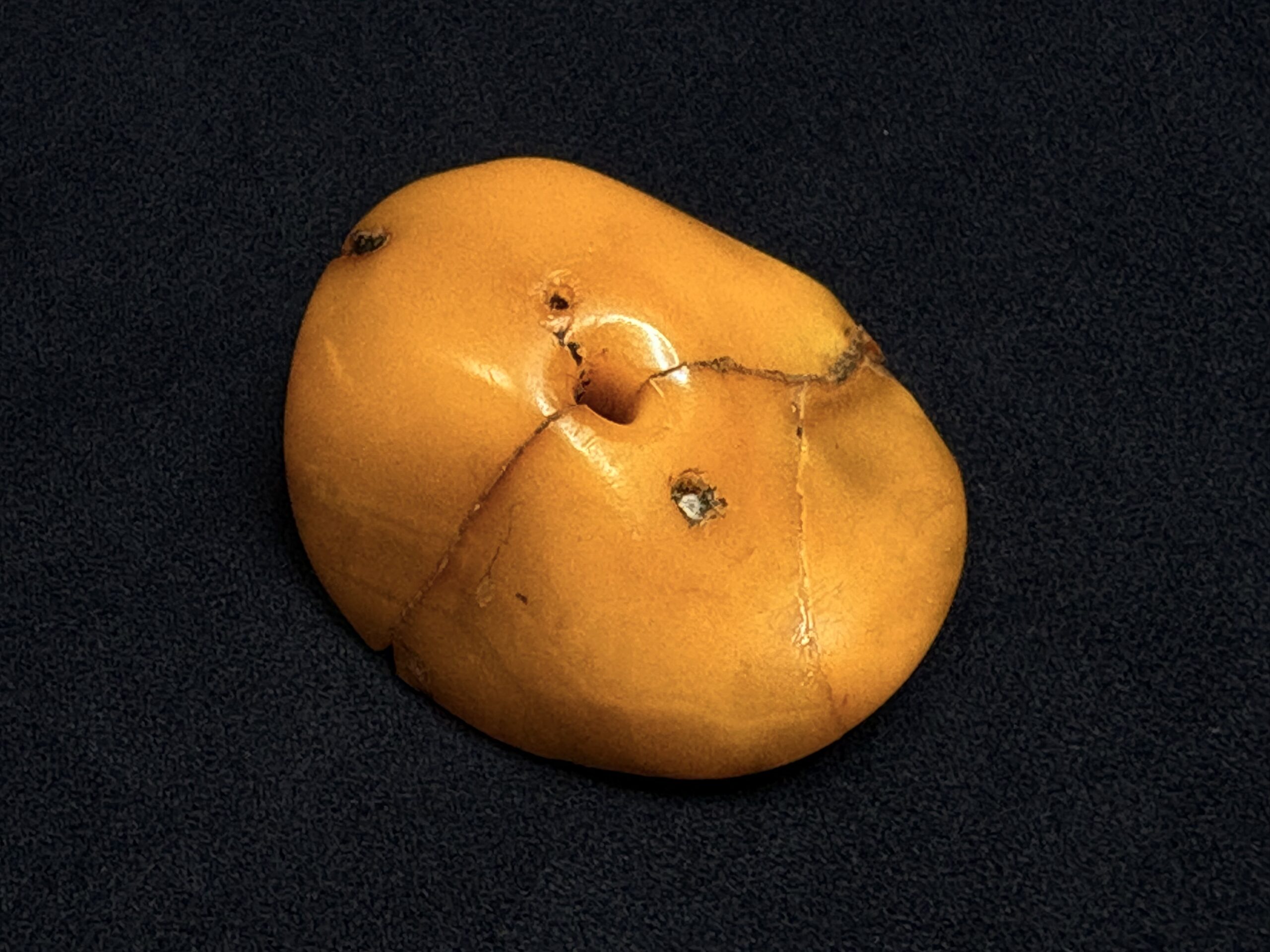 真っ二つに割れてしまった大粒のチベタンアンバー。