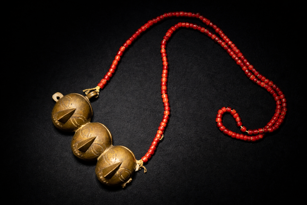 顔型のネックレスの中でも代表的な3つ並んだ意匠のネックレス。大量生産品ではないオリジナルの逸品です。