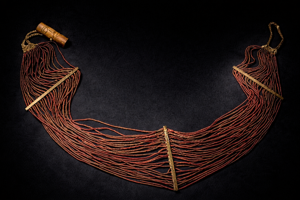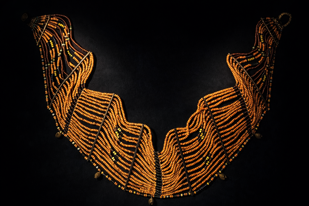 胸全体を覆う形のネックレス。細かなビーズを大量に使用したオリジナルの逸品です。