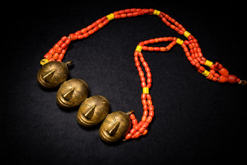 顔型のネックレスの中でも代表的な4つ並んだ意匠のネックレス。大量生産品ではないオリジナルの逸品です。