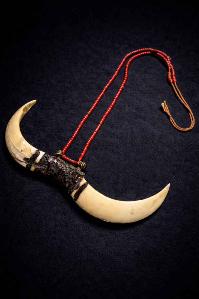 ナガ族らしい猪の牙をあしらい、非常に雰囲気の良いホワイトハーツも残っているオリジナルネックレス。ダメージも見当たらないコンディション抜群の逸品です。