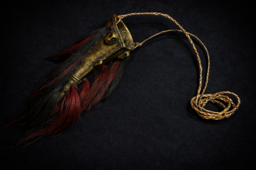 山羊の毛があしらわれ、全体的に顔をイメージしたようにも見える独特な意匠のナガ族のネックレス。大量生産品ではないオリジナルの逸品です。