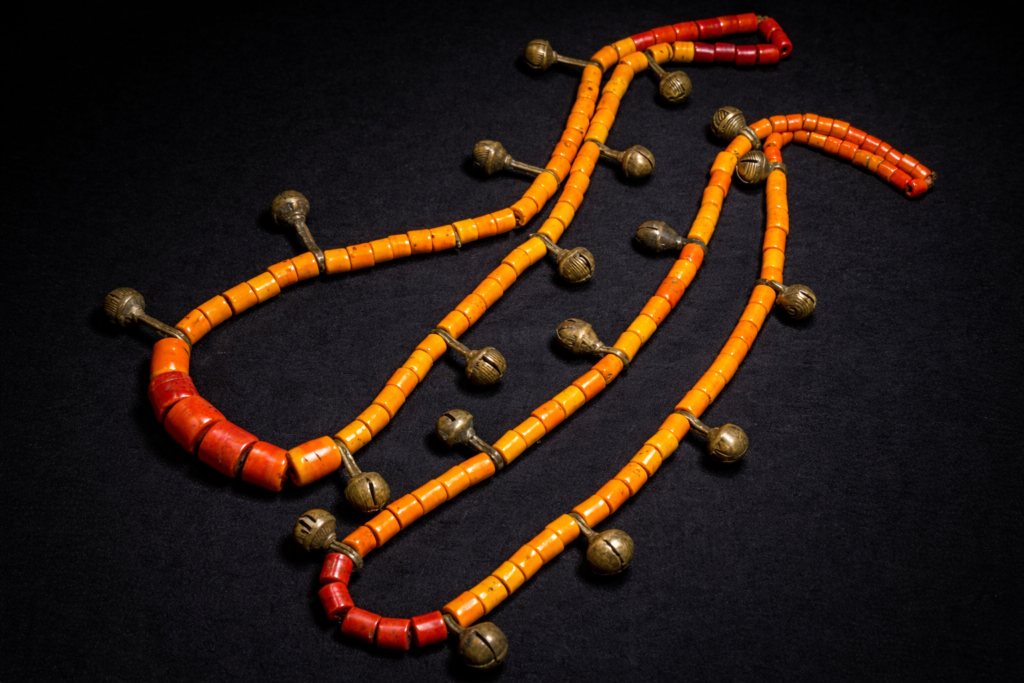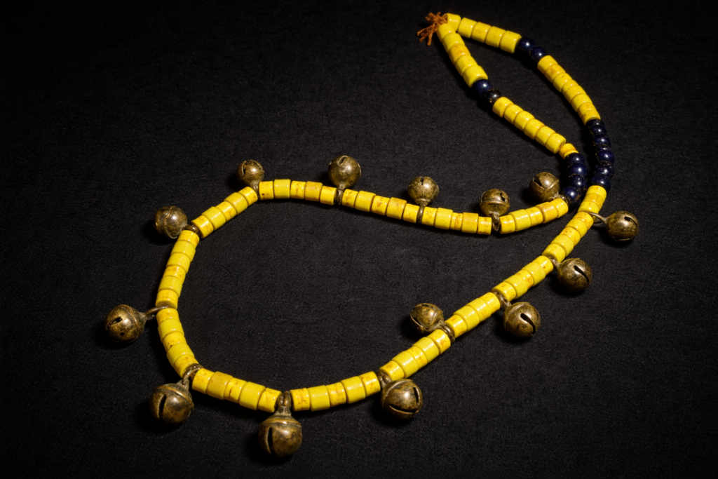紐は通し直されていますが、完璧な状態のナガ族オリジナルネックレス。こちらのネックレスに使用されているビーズはホワイトハーツではありません。