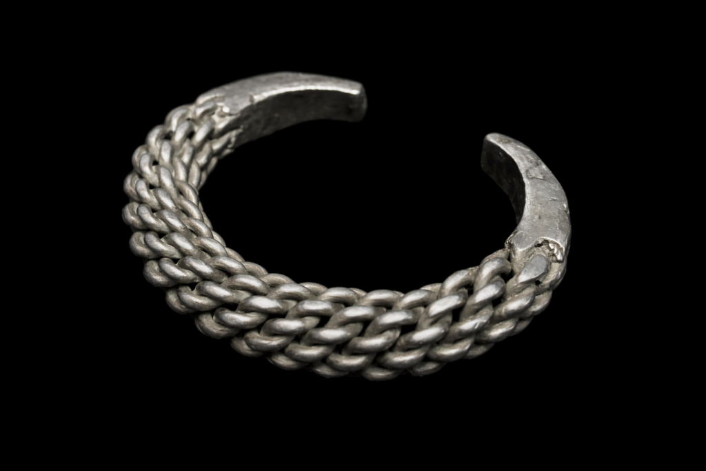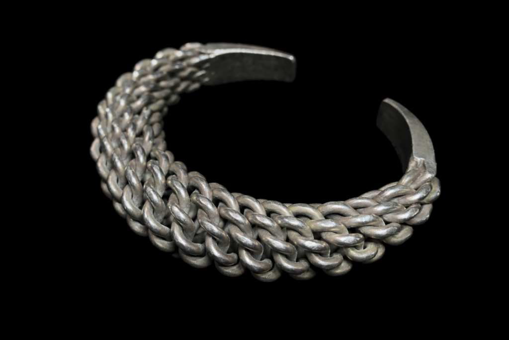 アカ族が実際に使用してきたオリジナルのシルバーブレスレット。職人の手仕事により、編み物のように編み込まれ、金属であることを忘れてしまいそうな非常に繊細な品。