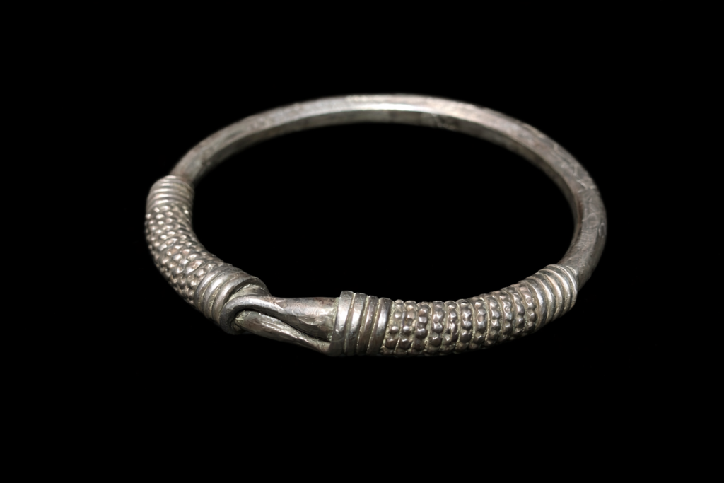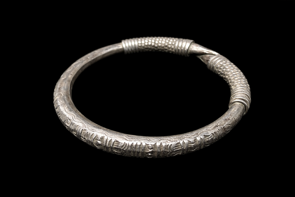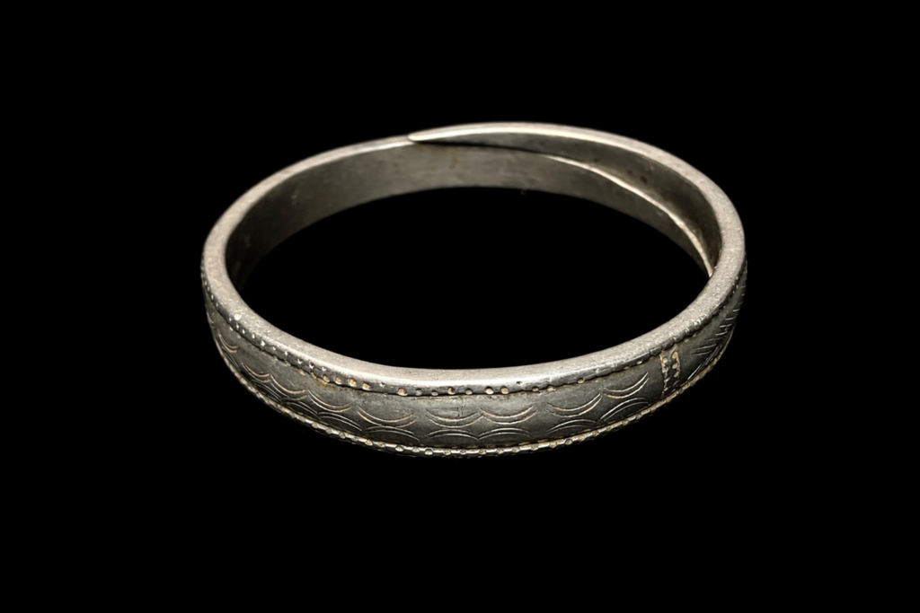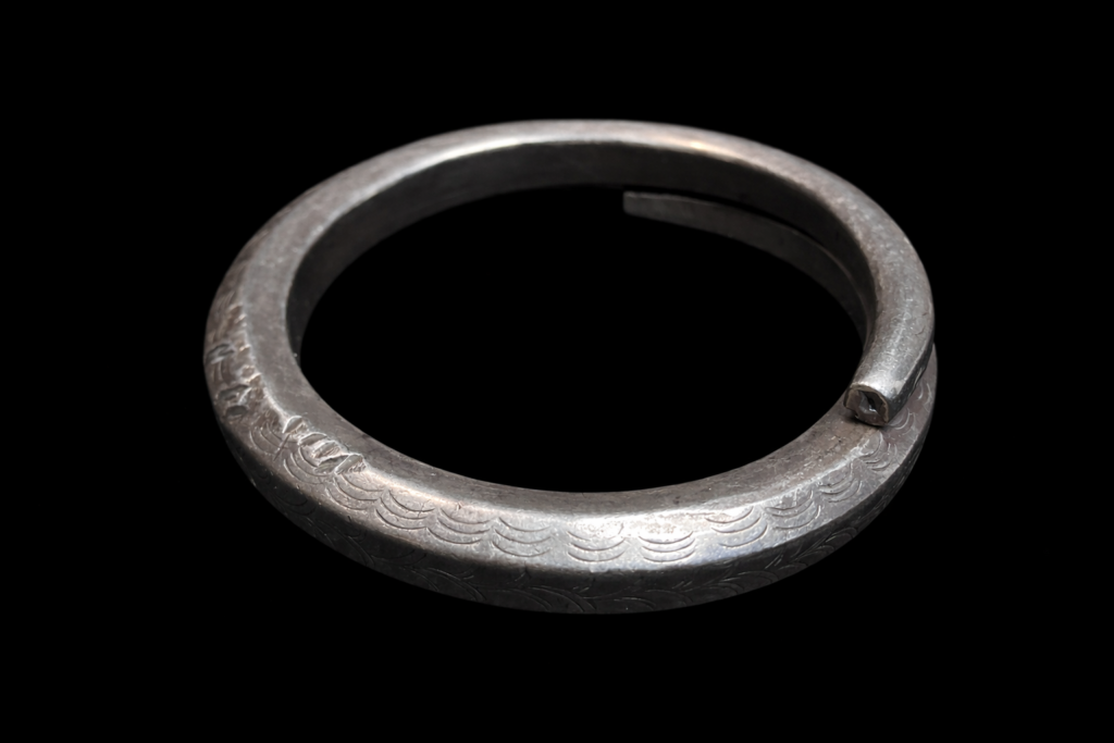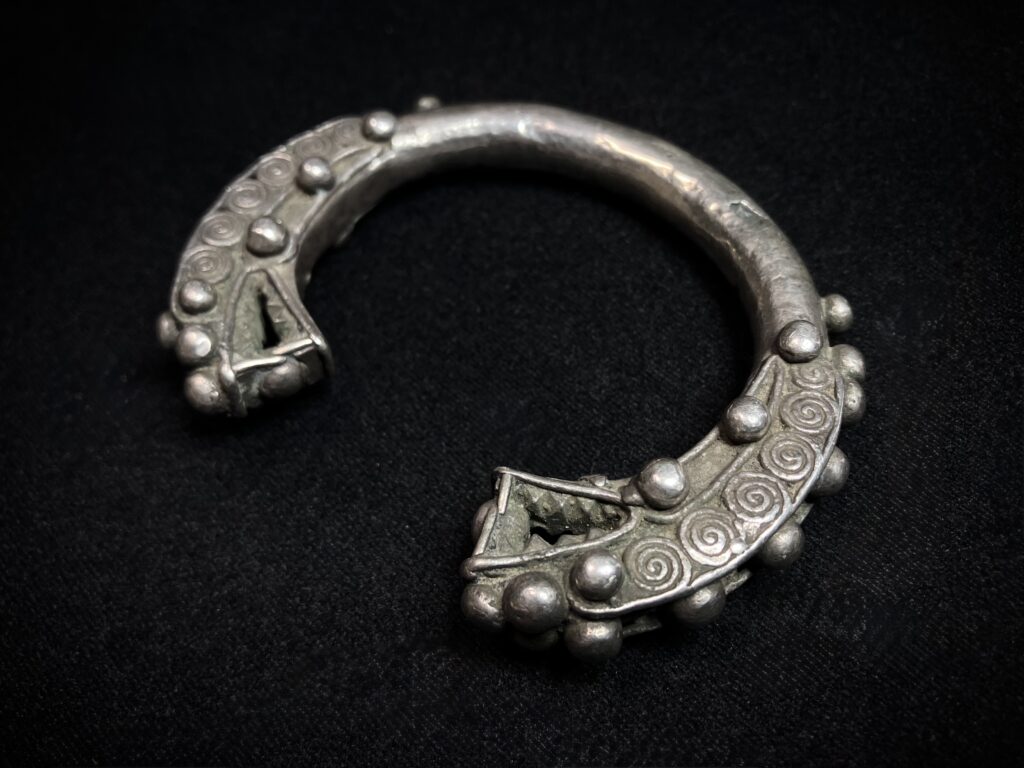アカ族が実際に使用してきたオリジナルのシルバーブレスレット。中が空洞になっている大型のブレスレット。細かな細工かつダメージのない貴重な逸品。