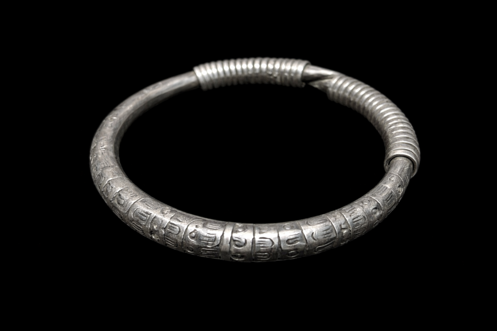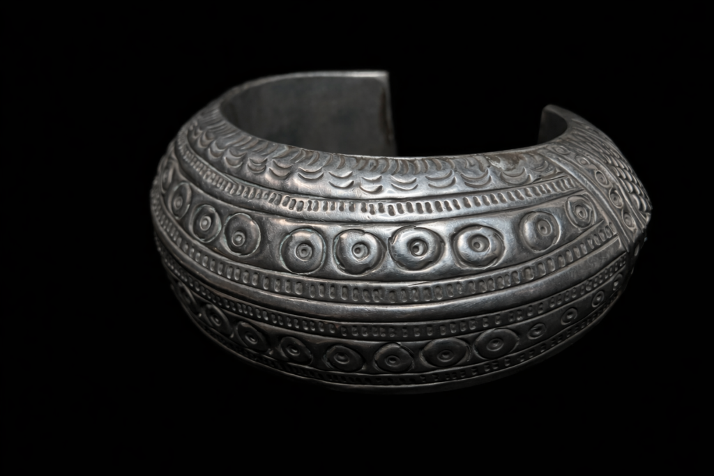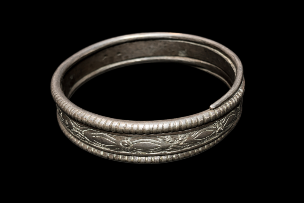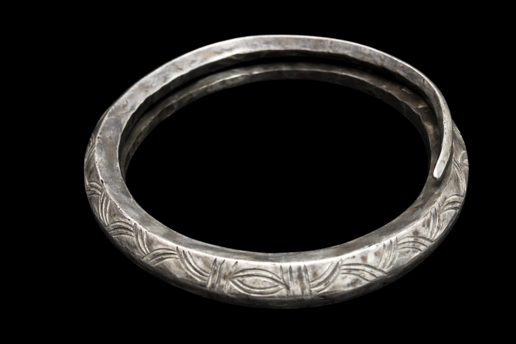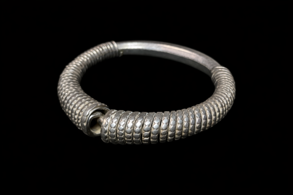 アカ族が実際に使用してきたオリジナルのシルバーブレスレット。中が空洞になっている大型のブレスレット。細かな細工かつダメージのない貴重な逸品。