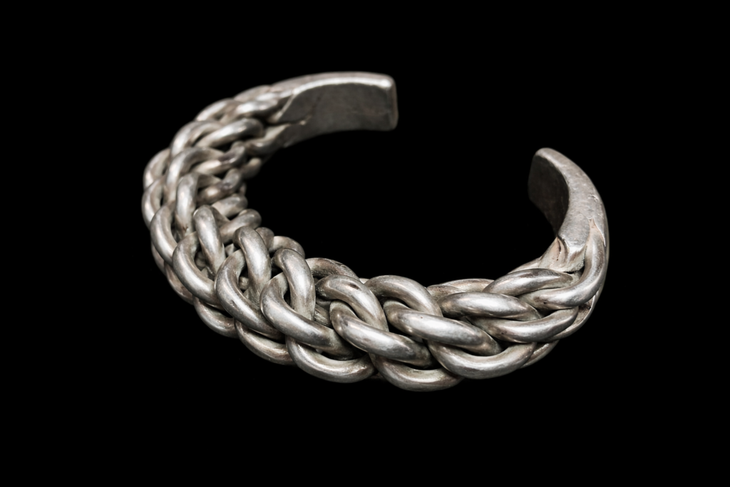 アカ族が実際に使用してきたオリジナルのシルバーブレスレット。職人の手仕事により、編み物のように編み込まれ、金属であることを忘れてしまいそうな非常に繊細な表情の品。
