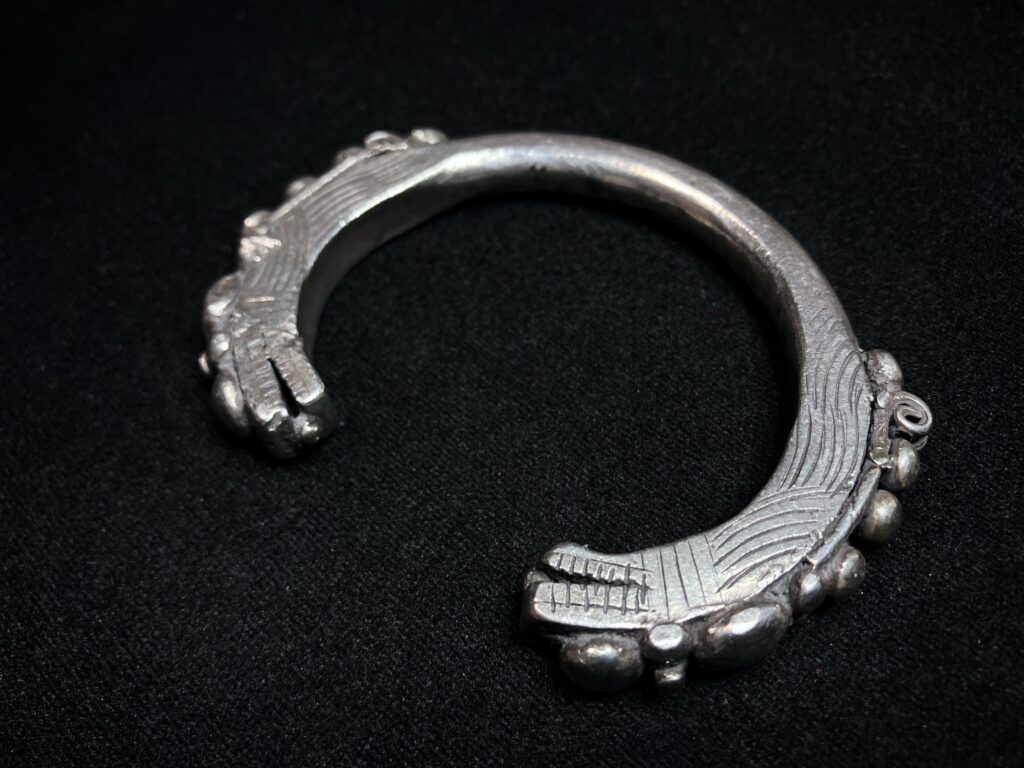モン族が実際に使用してきたオリジナルのシルバーブレスレット。龍のブレスレットはヤオ族が有名ですが、こちらはモン族が身に付けていた非常に珍しい貴重な逸品。