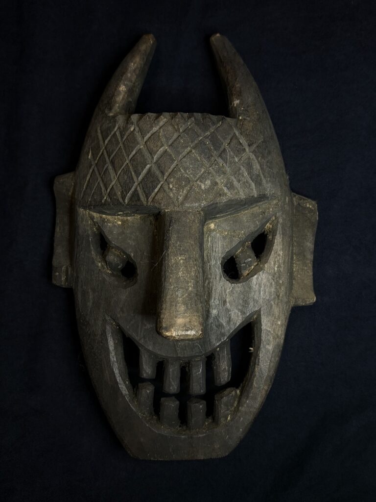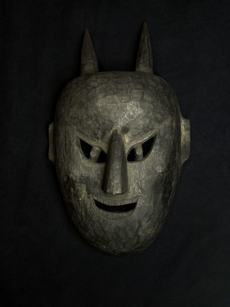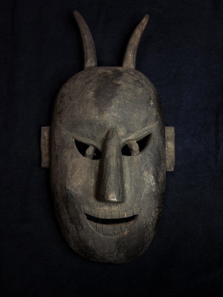 ヤオ族のシャーマンが実際に使用していた木製の儀礼用マスク。こちらはタイ側に住むヤオ族のもの。荒々しい彫りの力強さと滑らかで優しさも感じさせてくれます。