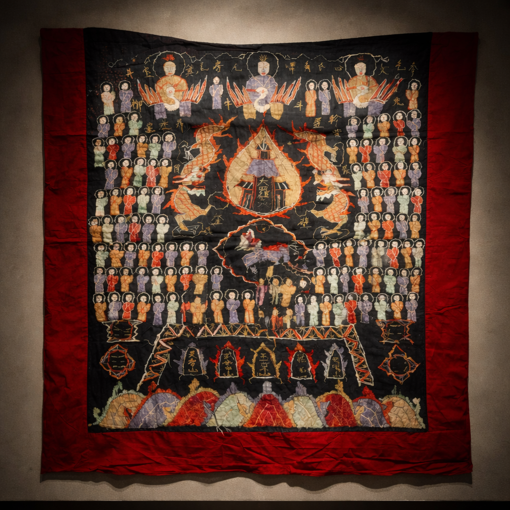 ヤオ族のシャーマンが実際に儀礼用に使用していたもので ヤオを最も代表するシャーマン用の上着です。絹糸で施された刺繍もしっかりと残っており状態の良い逸品。